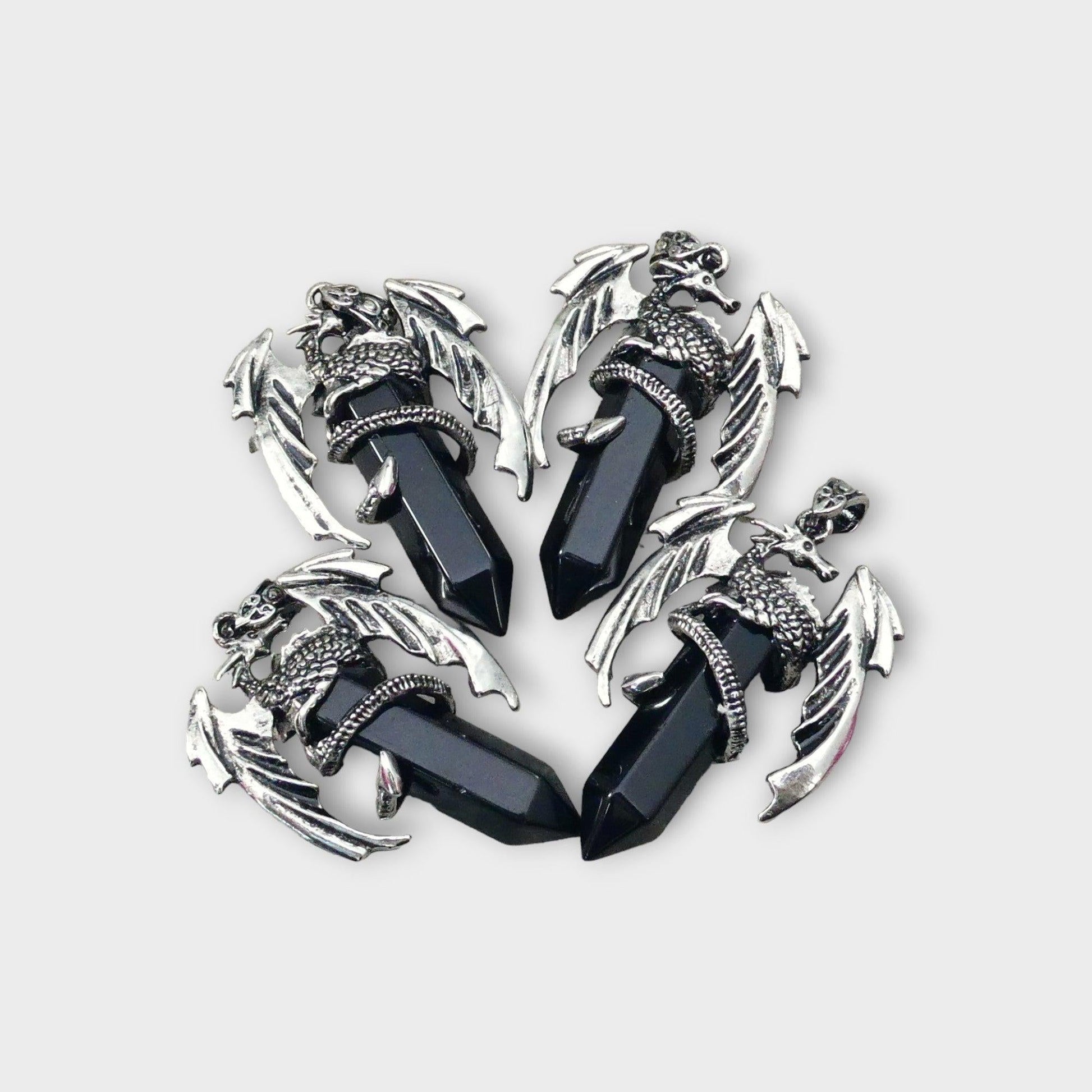 Black Onyx Flying Dragon Point Pendant 34x50mm